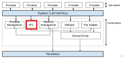 이를 위해서 커널 영역에서 IPC라는 내부 프로세스 간 통신을 제공하게 되고, 프로세스는 커널이 제공하는 IPC설비를 이용해서 프로세스간 통신을 할 수 있게 된다.