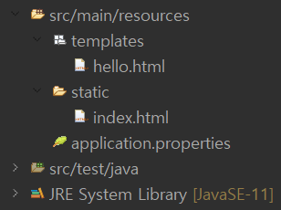 resources 폴더 안에 templates 폴더를 생성한 뒤에 hello.html 파일 생성!