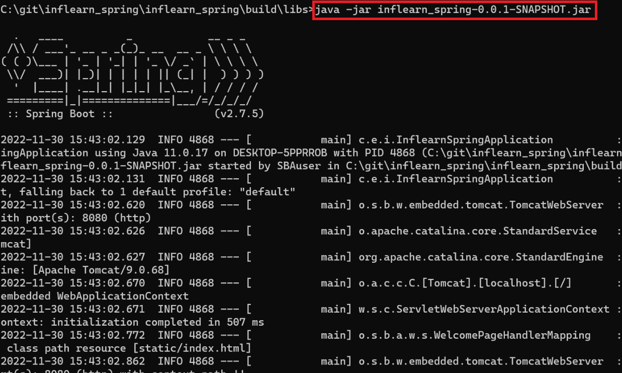 java -jar "위에서 확인했던 파일 -SNAPSHOT.jar