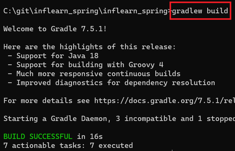 gradlew build (만약 잘 안된다면 gradlew clean build를 하고 다시 실행)