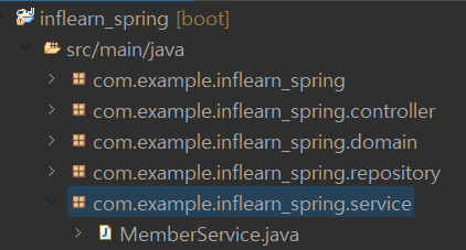src/main/java에 service 패키지 만든 후 MemberService 클래스 생성