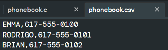 FILE*file = fopen("phonebook.csv","a");