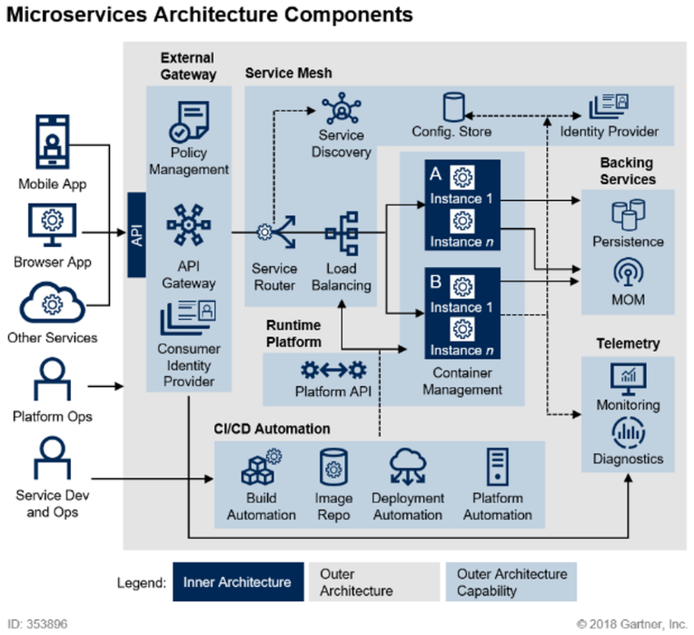 - Extrernal Gateway, Service Mesh, Container Management, Backing Services, Telemetry, CI/CD Automation