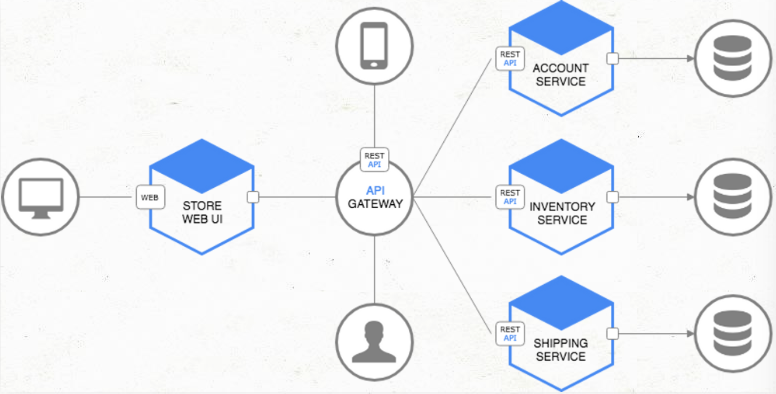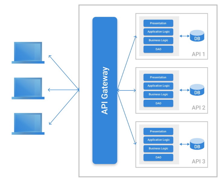 - API 게이트웨이는 서버 최앞단에 위치해 모든 API 호출을 받는다. 받은 API 호출을 인증한 후, 적절한 서비스에 메시지를 전달한다.
