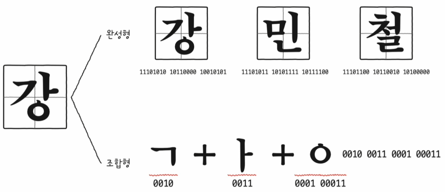 - 완성형 인코딩 방식과 조합형 인코딩 방식이 존재함