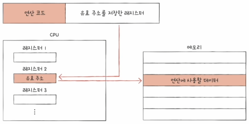 - 유효 주소[(effective address) : 연산에 사용할 데이터가 저장된 위치]를 찾는 방법
