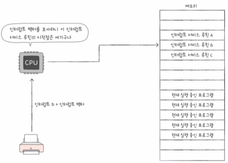 - CPU는 인터럽트 벡터를 참조해 인터럽트 서비스 루틴을 실행한다.