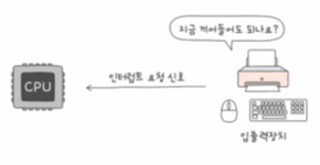 - 입출력장치는 CPU에 인터럽트 요청 신호를 보낸다.