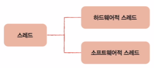 - 스레드는 큰 범위로 보면 실행 흐름의 단위라고 볼 수 있는데, 구분하면 하드웨어적 스레드와 소프트웨어적 스레드로 나눌 수 있다. 하드웨어적 스레드는 하나의 코어가 동시에 처리하는 명령어 단위이고, 소프트웨어적 스레드는 하나의 프로그램안에서 독립적으로 실행되는 단위이다!!