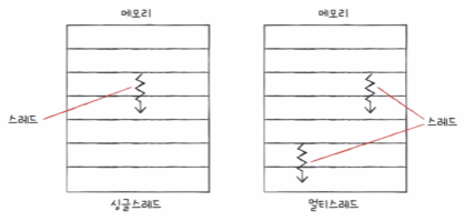 - 멀티스레드 : 여러개의 프로세서가 동시에 실행됨