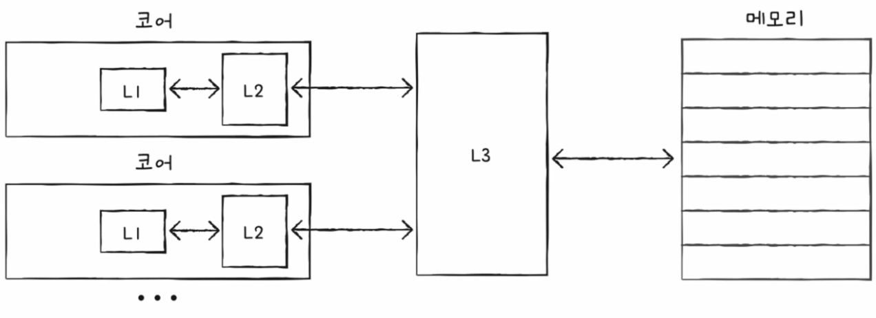 - 계층적 캐시 메모리(L1-L2-L3 캐시)