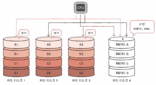 - 각 하드 디스크는 번갈아 가며 데이터를 저장한다.