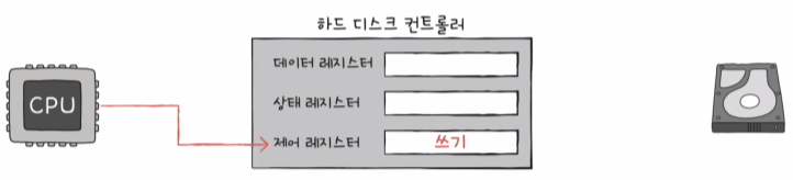 1. CPU는 하드 디스크 컨트롤러의 제어 레지스터에 쓰기 명령 내보내기