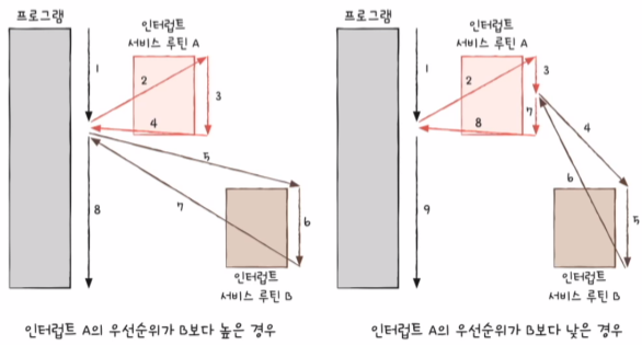 - 동시다발적인 인터럽트 : 우선 순위를 반영한 인터럽트