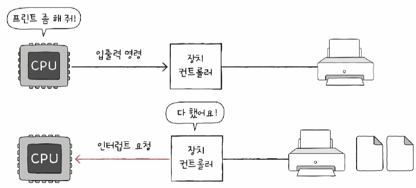 => 즉 CPU는 입출력 작업의 시작과 끝만 관여하게 된다.
