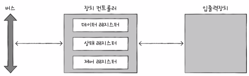 이런 이유로 입출력장치는 장치 컨트롤러를 통해 컴퓨터와 연결된다. 즉 입출력장치는 장치 컨트롤러를 통해 컴퓨터 내부와 정보를 주고 받는다.