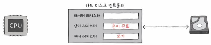 3-1. CPU는 상태 레지스터를 주기적으로 읽어보며 하드 디스크의 준비 여부를 확인