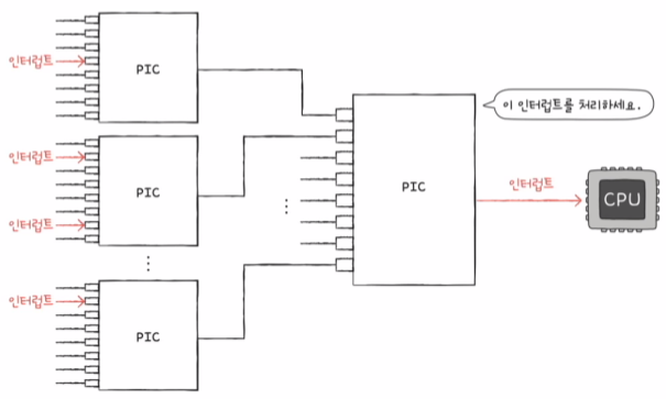 여러 장치 컨트롤러에 연결되어 장치 컨트롤러의 하드웨어 인터럽트의 우선순위를 판단한 뒤 CPU에게 지금 처리해야 하는 인터럽트가 무엇인지 판단하는 하드웨어
