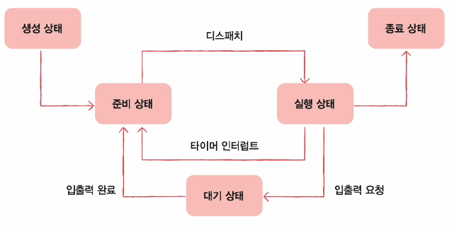 | 생성상태, 대기상태, 준비상태, 실행상태 등 | |