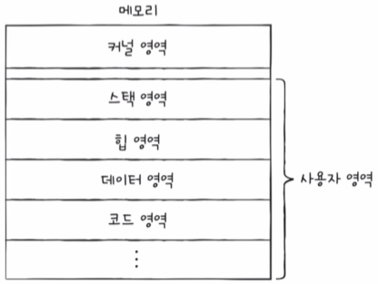 - 사용자영역은 크게 코드 영역(=텍스트 영역), 데이터 영역, 힙 영역, 스택 영역으로 나뉜다.