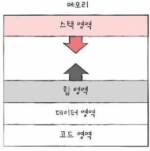 | 스택 영역 | 데이터가 일시적으로 저장되는 공간 |