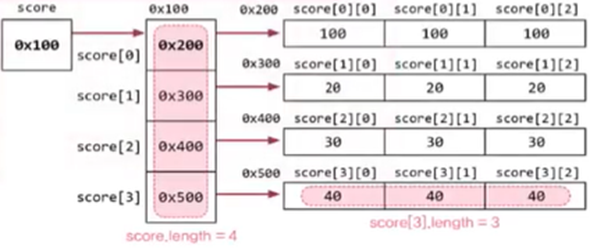 score[0][0] = 100; // 배열 score의 1행 1열에 100을 저장