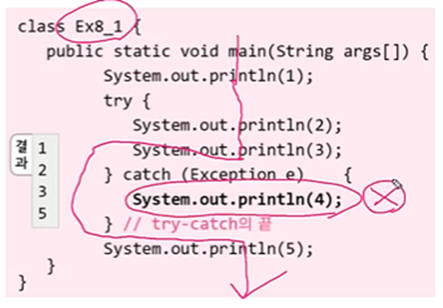 (5) Catch문을 빠져나와서 System.out.println(4) 출력