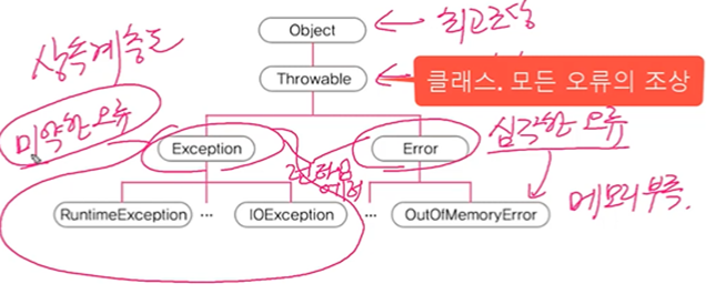 -> 모든 클래스의 조상은 Object클래스이므로 Exception과 Error클래스도 Object 클래스의 자손들