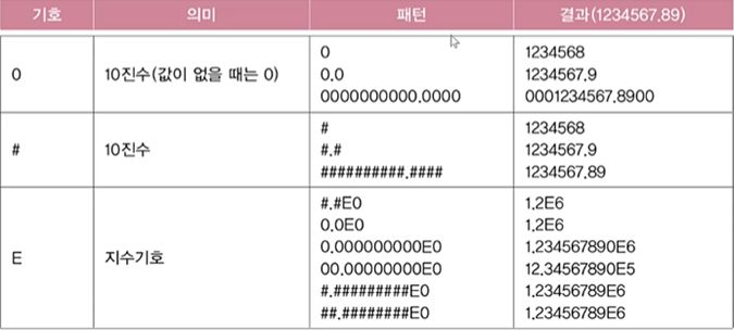 - 형식화: 숫자와 날짜를 원하는 형식으로 출력 (숫자, 날짜 -> 형식 문자열)
