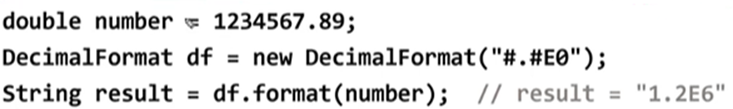 DecimalFormat df2 = new DecimalFormat("#.###E0");