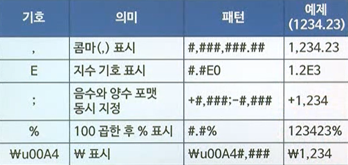 - 숫자를 형식화하는 데 사용함