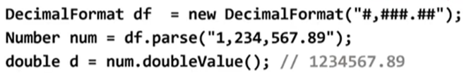 Number num = df.parse("1,234,567.89"); // parse가 문자열 -> 숫자(Number)