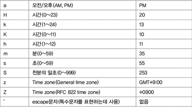 (2) SimpleDateFormat으로 원하는 출력형식의 패턴을 지정