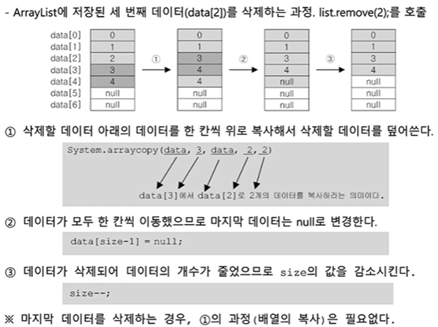 | boolean remove(Object o) | ArrayList에서 삭제 |