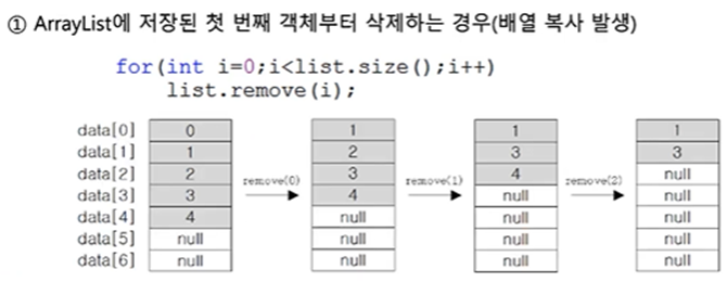 - list.size( )는 5 / remove(0), remove(1), remove(2) … 이렇게 삭제됨